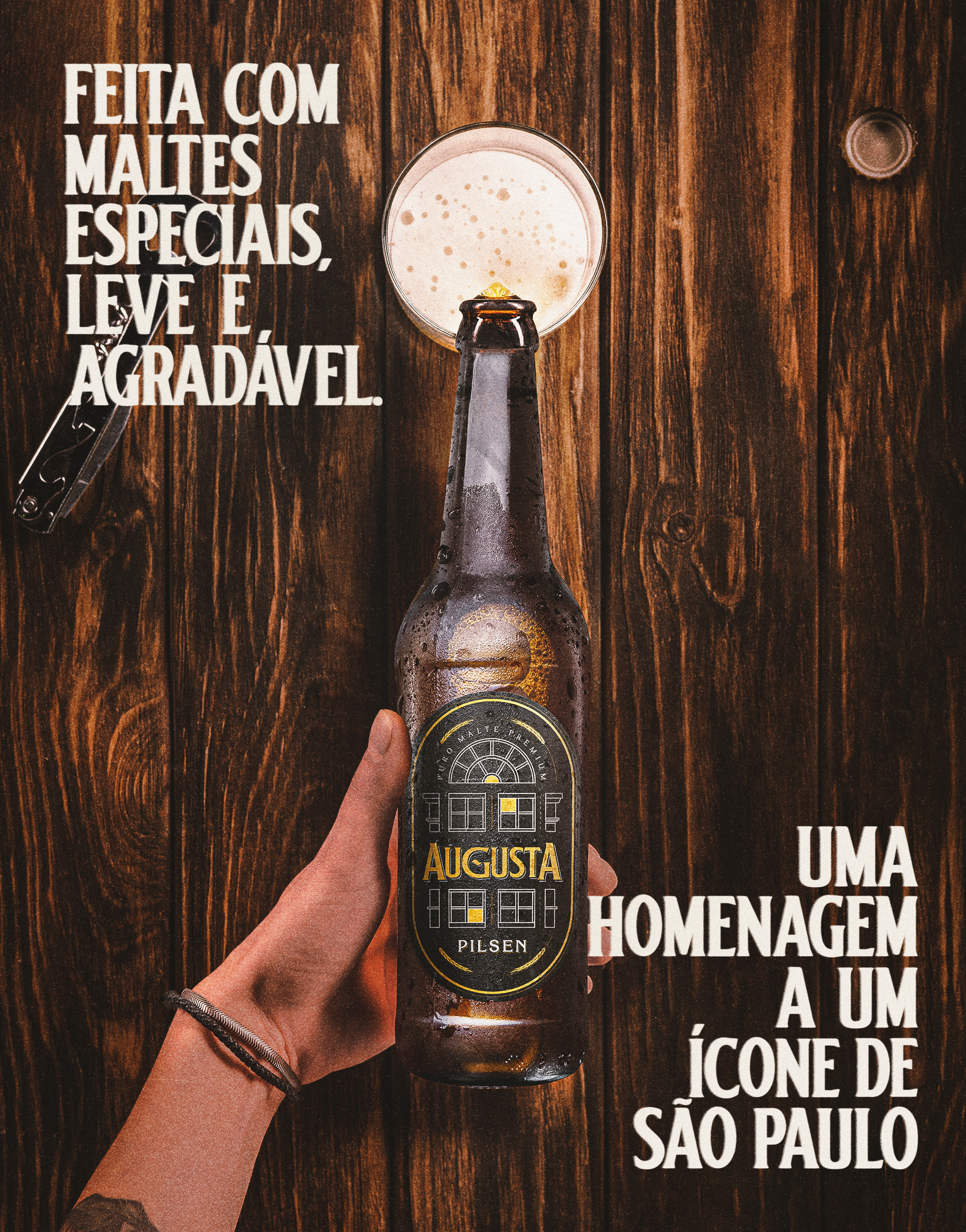 Cerveja Augusta is a tribute to a true icon of São Paulo, Rua Augusta. The label captures the essence of the street’s golden era, reflecting its cultural and architectural heritage.