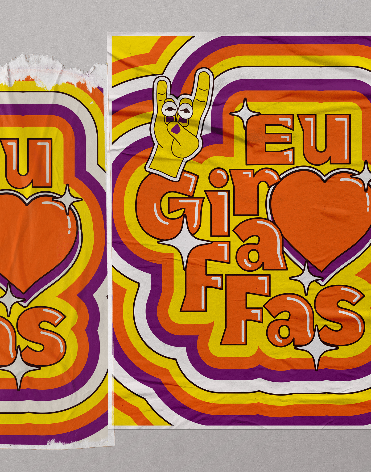 Criação de ilustrações para lambe-lambes da rede de restaurantes Giraffas, desenvolvidas para decorar e ampliar a presença da marca em grandes eventos como Na Praia, Meskla e Funn Festival. O objetivo foi criar peças visualmente atrativas, que tornassem os espaços mais divertidos e “instagramáveis”, proporcionando ao público uma experiência marcante.